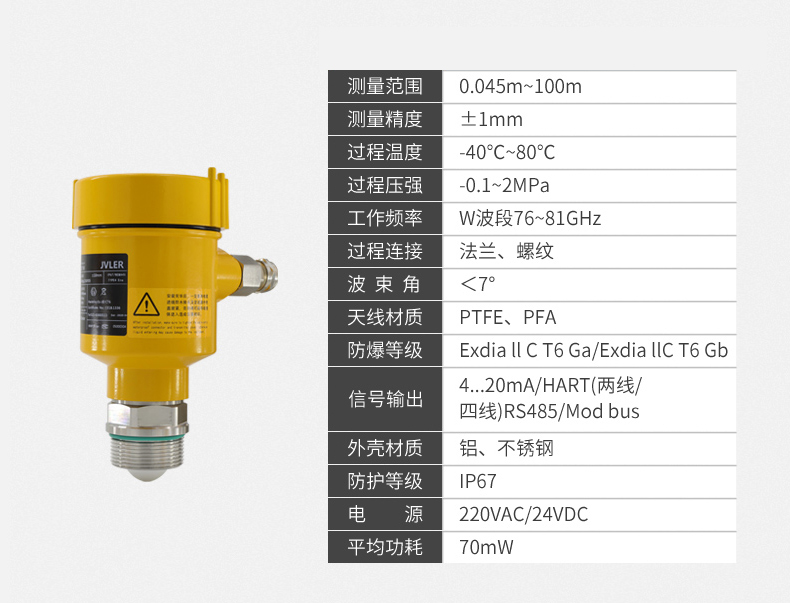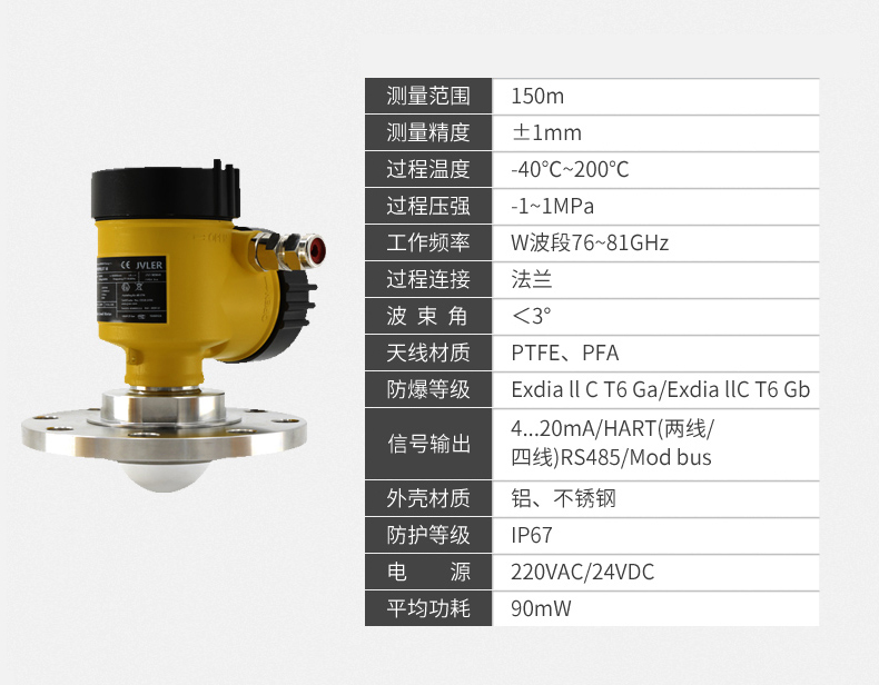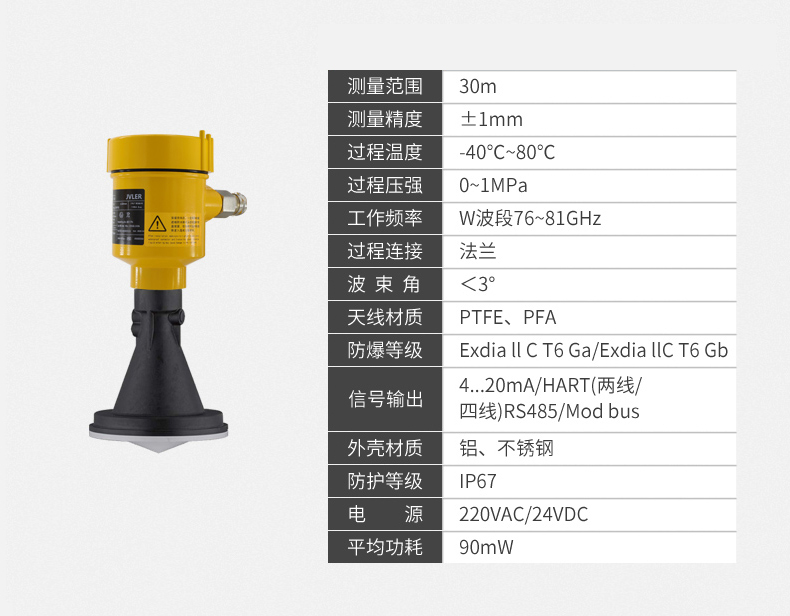 n 最窄3°天线波束角,安装环境中的干扰对仪表的影响更小,安装更为便捷。